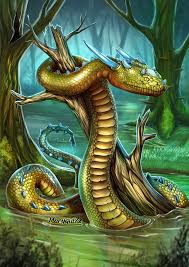 Most fascinating of all to Isolt, was the great horned river serpent with a jewel set into its forehead, which lived in a nearby creek. Even her Pukwudgie guide was terrified of this beast, but to his astonishment, the Horned Serpent seemed to like Isolt. Even more alarming to William was the fact that she claimed to understand what the Horned Serpent was saying to her.