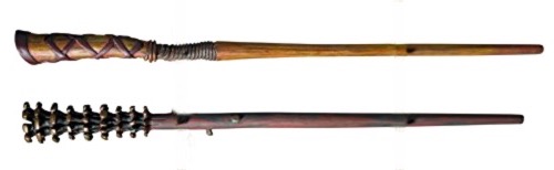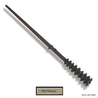 Fred Weasley’s wand is based on a long Pine Cone handle with a few woody nobs on its shaft, 14 inches long; the straight-grained pine wand always chooses an independent, individual master who may be perceived as a loner, intriguing and perhaps mysterious. Pine wands enjoy being used creatively, and unlike some others, will adapt unprotestingly to new methods and spells. Many wandmakers insist that pine wands are able to detect, and perform best for, owners who are destined for long lives, and I can confirm this in as much as I have never personally known the master of a pine wand to die young. The pine wand is one of those that is most sensitive to non-verbal magic.