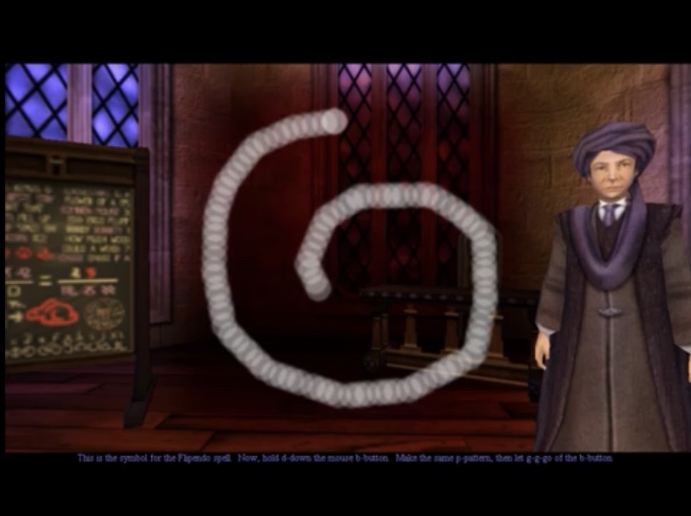 To learn the spell you’ll have to trace the figure with the mouse, which is really difficult the first time you’re gonna try, so don’t get fussy if you don’t get it straight away. The more figure you manage to trace, out of four, the more House Points you’ll collect.
