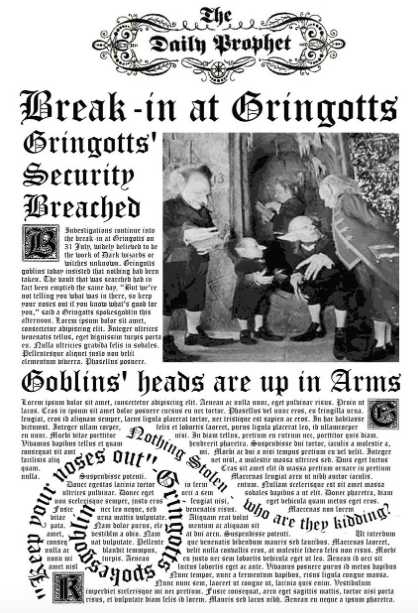 The second most famous break in was committed in 1998 by Harry Potter, Hermione Granger and Ronald Weasley, whose purpose was to break in into Lestrange’s Vault to steal the Horcrux hidden in it, and destroy it. They used a Confundus Charm on the guards, so that they could enter unchecked, then used the Imperius Curse on the Goblin to persuade them to let them forward. In the Lestrange’s Vault however they met particular measures to deal with, it has been added on the fake treasure the Gemino and the Flagrante Curses, which meant that at every touch of the objects the thief got burned and the object got multiplied infinite times. They still managed to flee from the bank riding a half-blind dragon which was part of the security of the bank.